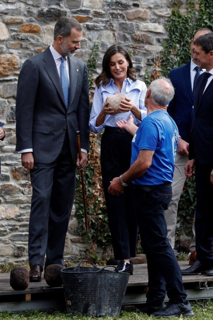 Durante la visita a la aldea de Moal, enclavada en el concejo suroccidental de Cangas del Narcea, los reyes han podido saludar a los vecinos de la localidad, conocer sus tradiciones e incluso el rey Felipe VI se ha animado a practicar el tradicional bolo vaqueiro, uno de los deportes rurales más arraigados en Asturias.