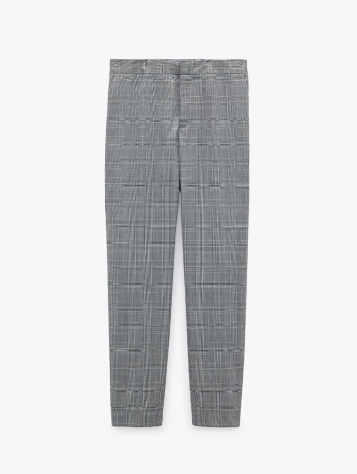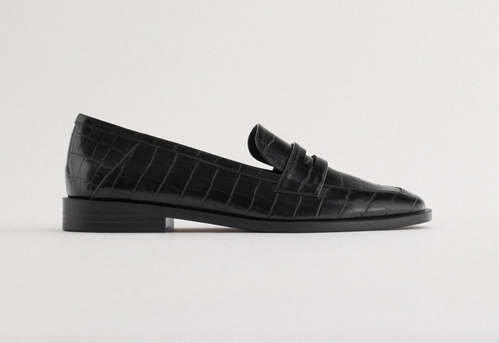 Combinó la prenda con un fino jersey negro básico de algodón y un pantalón de traje de cuadros en tonos grises. Letizia calzó unos mocasines negros que ya ha lucido en infinidad de ocasiones y una bandolera negra de tachuelas de Uterqüe.