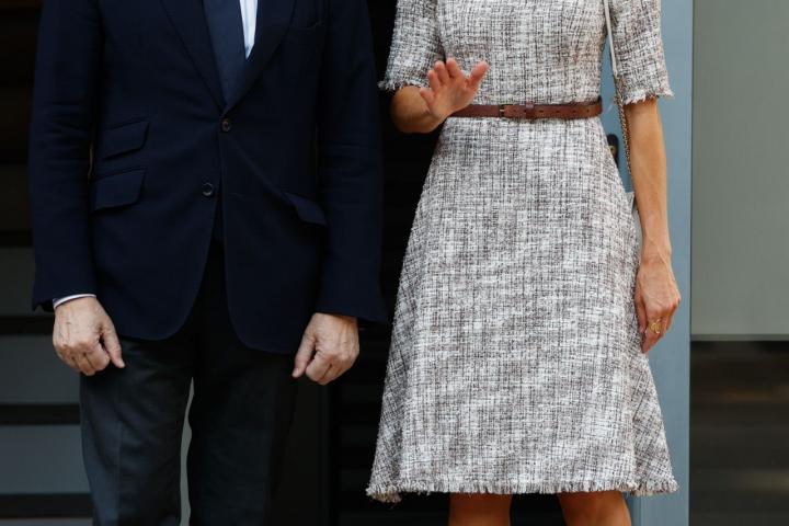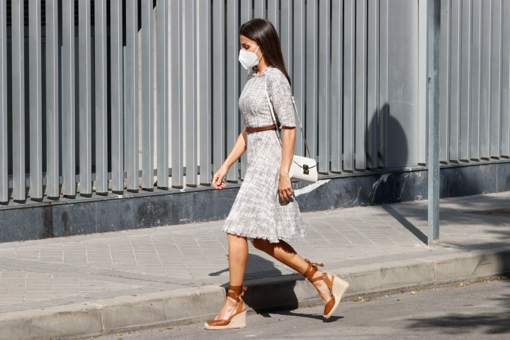 A pesar de que la falda del diseño no sobrepasa la rodilla y que es de manga corta, la reina cuenta con opciones de tejidos más frescos y recomendados para el verano. No es la primera vez que Letizia tira de tweed con el calor ya apretando.