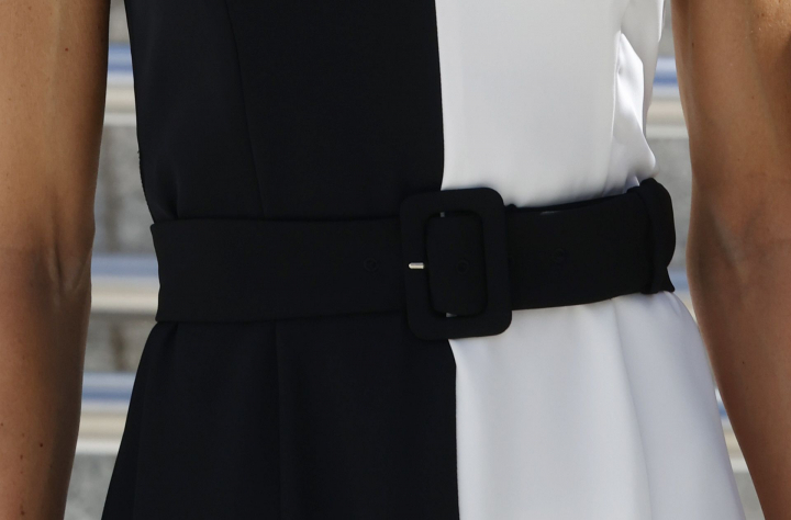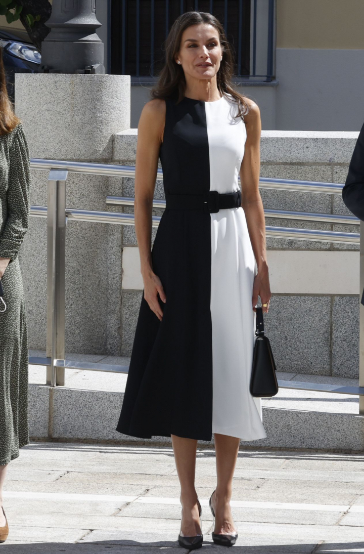 Letizia combinó esta nueva incorporación a su armario con accesorios reciclados. En concreto, unos salones negros de Magrit que ha calzado en múltiples ocaciones y un bolso de Hugo Boss al que también le ha sacado partido desde que lo estrenó en 2015.