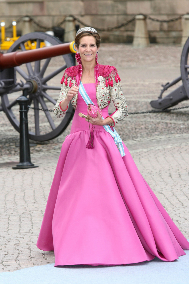 El estilismo torero de la reina ha recordado a muchos al de su cuñada, la infanta Elena, en la boda de Victoria de Suecia y Daniel Westling en Estocolmo en 2010, aunque éste era un diseño de Lorenzo Caprile.