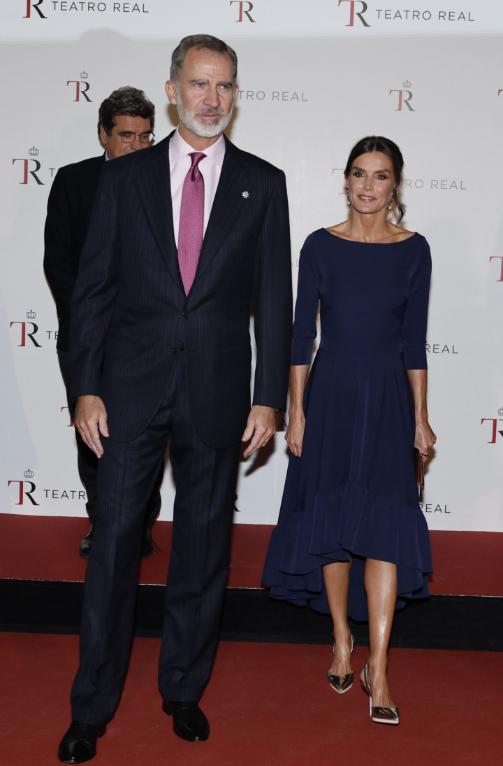 Los reyes han vuelto este lunes a presidir una de las fechas más señaladas de su calendario: la inauguración de la temporada del Teatro Real. Después de causar baja en 2021 por un viaje a la isla de La Palma, Felipe y Letizia han acudido al coliseo madrileño para el estreno de Aída.