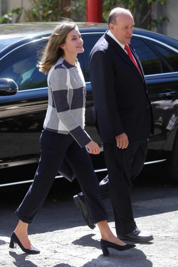 Aunque Madrid tenga estos días temperaturas que rozan el cero de madrugada, no ocurre igual en D.F., que a esas horas está cerca de los 25 grados. Así, la reina patinó ligeramente al optar por un look más invernal de lo que la situación merecía.