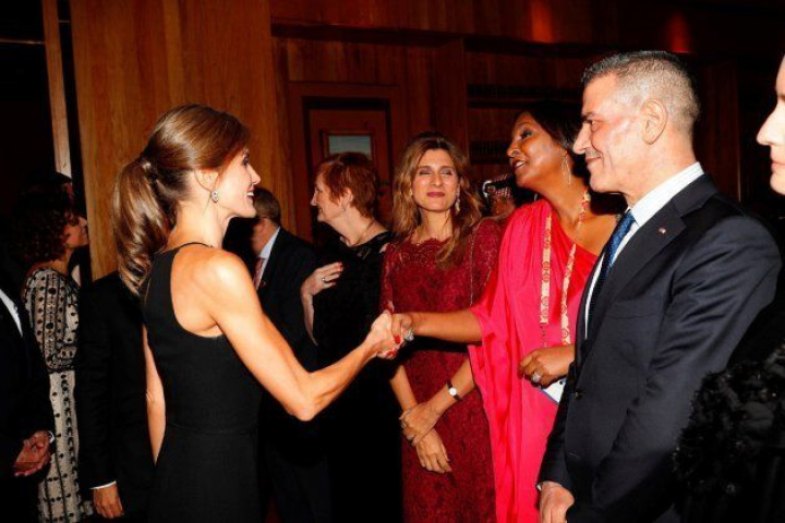 La reina Letizia, Enrique Peña Nieto y Angélica Rivera durante la cena oficial de la Cumbre Mundial de Líderes contra el CáncerEFE/CASA REALLa reina Letizia saludando a los invitados durante la cena oficial de la Cumbre Mundial de Líderes contra el Cáncer.EFE/CASA REAL