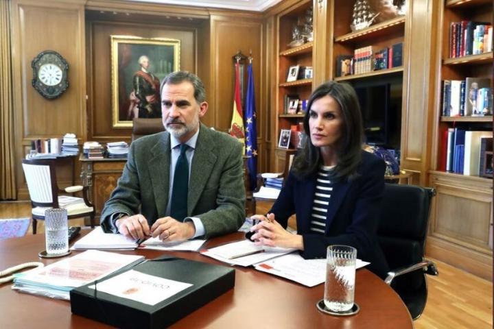 En ella, se ve a los reyes sentados juntos delante de sus cuadernos frente a la pantalla para conversar con Roig y otros directivos de Mercadona desde el despacho del monarca.