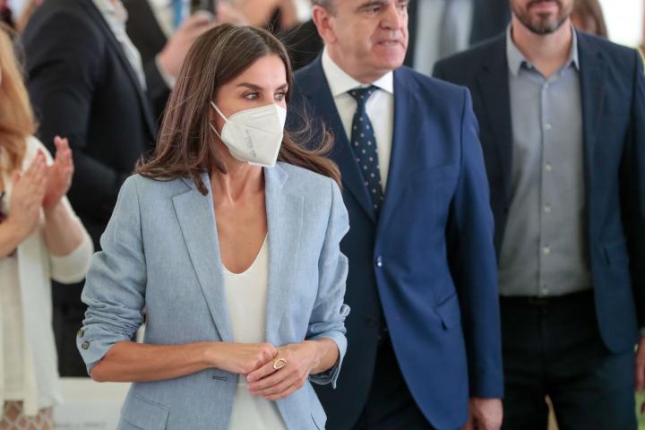 Con una mascarilla FFP2 “por prudencia” y en el estadio de Vallehermoso en Madrid. Así ha reaparecido la reina Letizia en la mañana del martes después de recuperarse del covid. Casa Real anunció el positivo de la consorte el 5 de julio, un día después de participar en los actos de los Premios Fundación Princesa de Girona, donde también estaban Felipe VI y sus hijas, Leonor y Sofía.