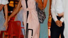 Para la ocasión eligió un abrigo beige de Felipe Varela que combinó con un vestido con lazada al cuello del mismo tono.
