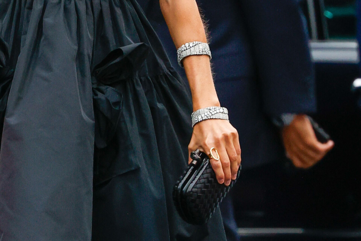 Letizia ha combinado el vestido con una cartera trenzada de Bottega Veneta y unos salones de Manolo Blahnik a juego. La consorte no ha escatimado en joyas y ha lucido los pendientes de chatones, una de las piezas más espectaculares del joyero real y que la reina ya eligió para la entrega de estos galardones en 2018. Además, también ha lucido las espectaculares pulseras gemelas de diamantes de Cartier que forman parte del lote de joyas de pasar.