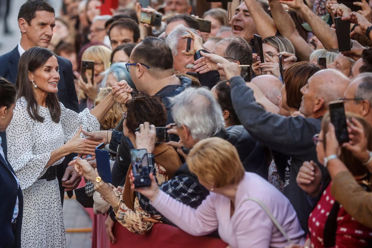 La reina Letizia saluda a un grupo de personas que la esperaban antes de la entrega de los premios Jaume I, en Valencia. (Photo By Rober Solsona/Europa Press via Getty Images)Europa Press News via Getty Images