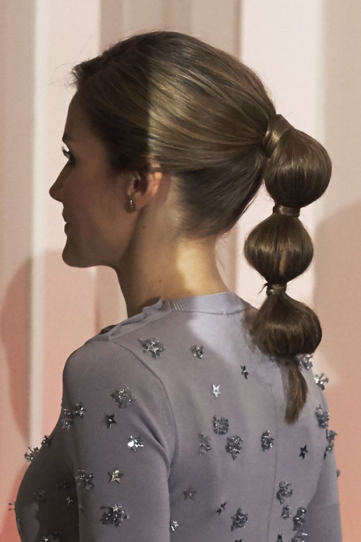 En ella el pelo parte desde arriba y va haciendo bolas a lo largo de la misma, tres, en el caso de la reina. Un peinado que han lucido muchas celebrities como Kendall Jenner o las actrices Blake Lively y Olivia Wilde, pero con el que no habíamos visto nunca antes a Letizia.