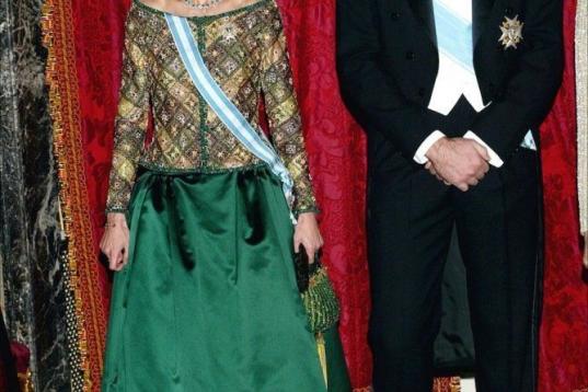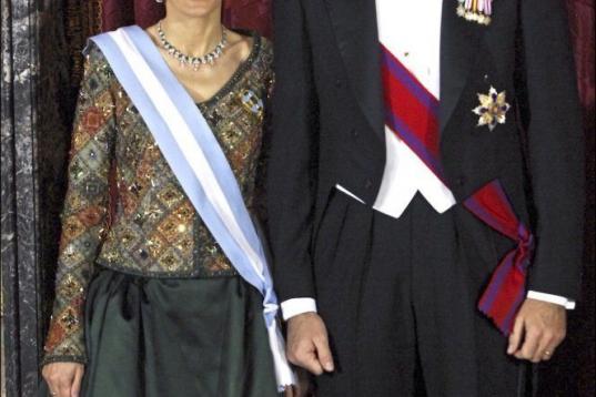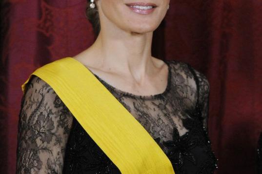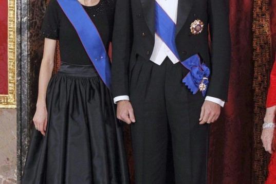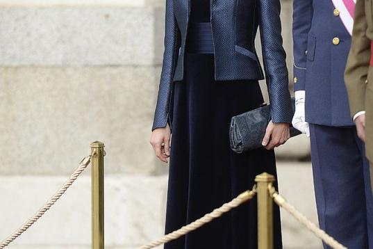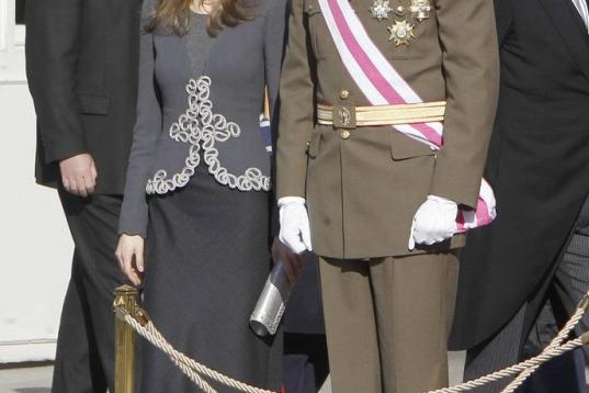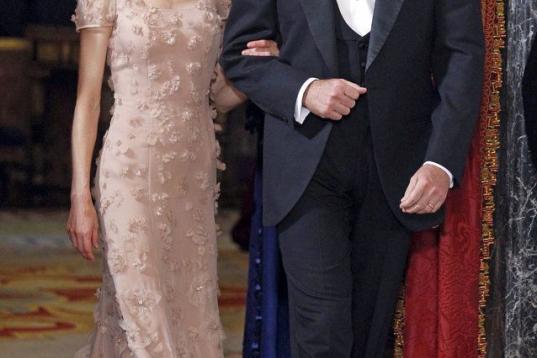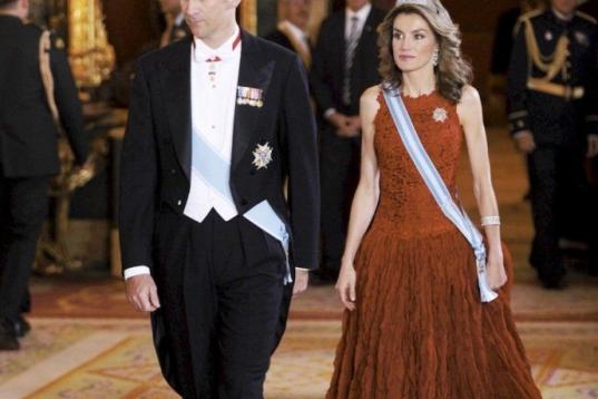 La cabecera destaca que ésta es una de las citas más especiales de los reyes y, además de fijarse en cómo combinó el vestido con unos tacones y un clutch dorados a juego, no se olvidan del rey.