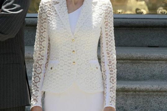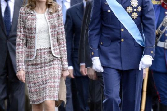 De Felipe VI resaltan que también estaba “elegante” con un traje de raya diplomática y una corbata morada.