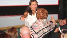 Letizia combinó el vestido con unos pendientes de perlas que luce habitualmente y clutch y zapatos crema a juego, ambos de Magrit. No ha faltado el anillo de Karen Hallam del que no se despega.