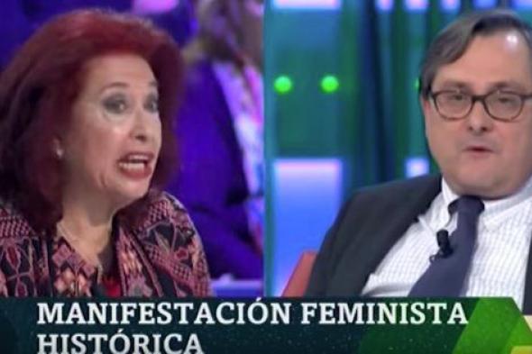 Entre los tertulianos estaba Lidia Falcón, histórica militante feminista y fundadora, en 1977, de la Organización Feminista Revolucionaria, que luego pasaría a ser el Partido Feminista de España.