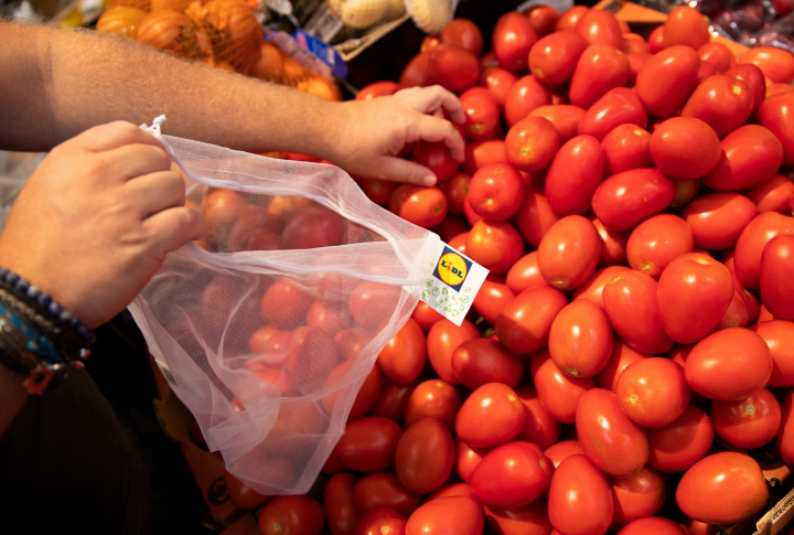 La batalla contra el plástico no cesa. Lidl ha lanzado este jueves una bolsa de malla para la sección de fruta y verdura. La cadena de supermercados de bajo coste copia así una iniciativa similar puesta en marcha a principios de agosto por su rival Carrefour.