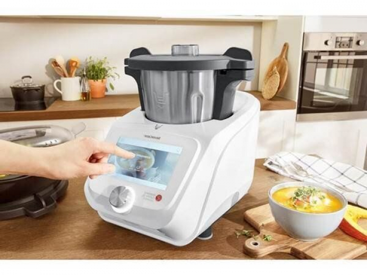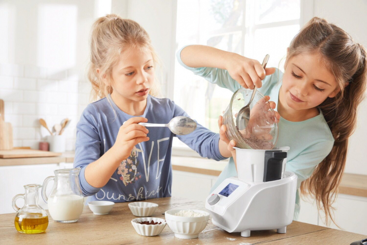 El robot de cocina dispone de un vaso con capacidad para 3,1 litros y una báscula integrada para pesar los ingredientes. El dispositivo cuenta con 10 funcionalidades entre las que se encuentran cocer, cocinar al vapor, batir, amasar, emulsionar, picar, sofreír y triturar.