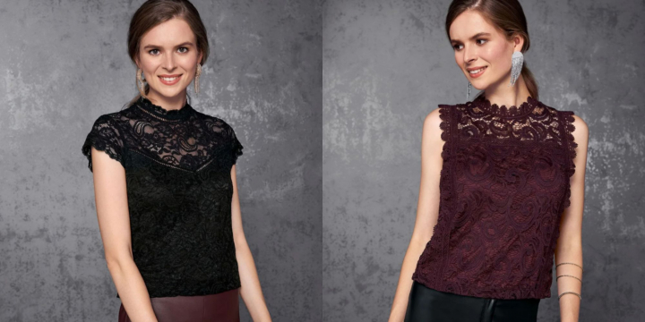 Además, dentro de su oferta, ha incluido dos tops de encaje para que se puedan combinar con un pantalón o falda. Uno con mangas en color negro y otro sin mangas en color burdeos. Ambos, por 8,99 euros.