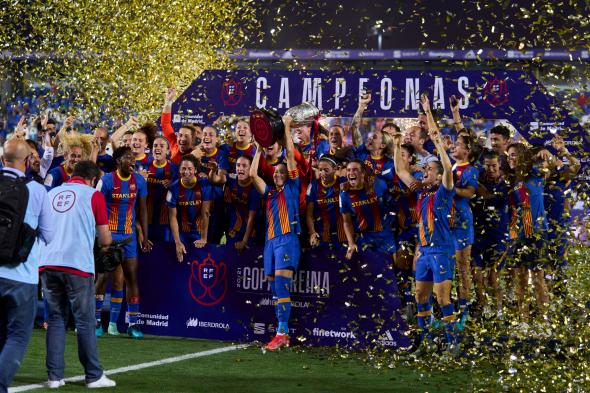 El Barça Femení ha conquistado la Copa, su último título, este domingo; es la octava de su palmarés y la ha logrado al superar (4-2) al Levante UD en la final celebrada en el Estadio Municipal de Butarque (Leganés, Madrid), para celebrar así el triplete.