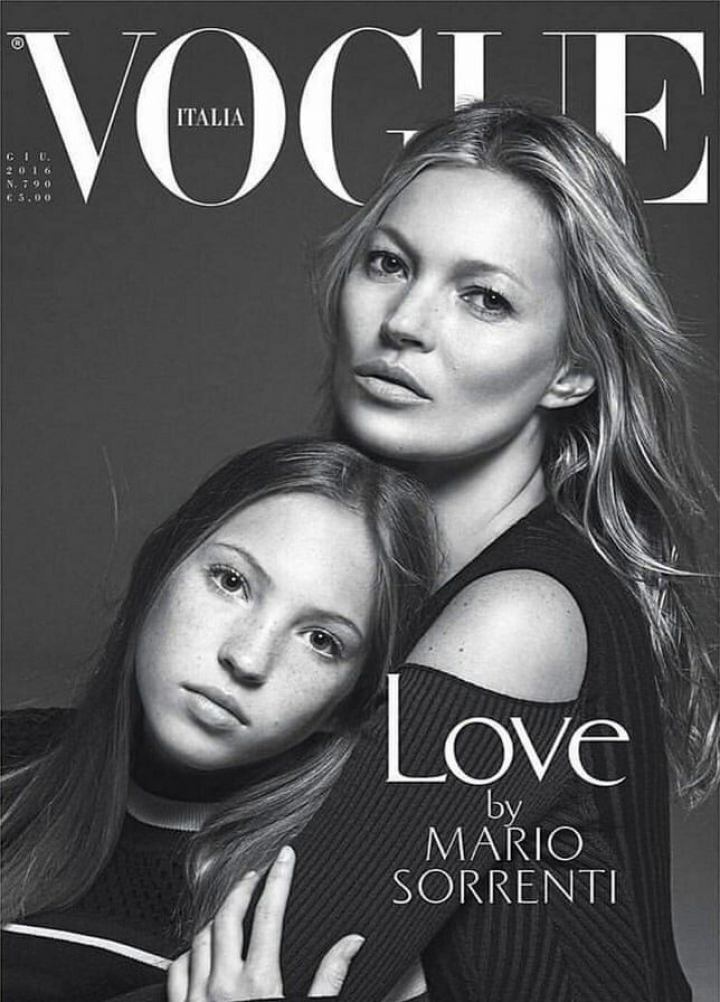 No es su primera portada. Moss ya había debutado junto a su madre en junio de 2016 en Vogue Italia cuando todavía no se vislumbraba su carrera como modelo. Madre e hija aparecen abrazadas en una imagen en blanco y negro tomada por el fotógrafo Mario Sorrenti, expareja de la supermodelo y el responsable de retratarla en sus primeras campañas para Calvin Klein en los noventa.