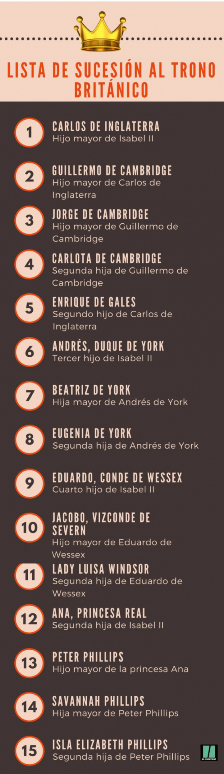 Entonces ¿cómo queda la línea de sucesión al trono? Aquí puedes ver los 15 primeros puestos.