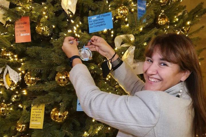 Se trata de un adorno que la propia Borràs procedió a colgar en el árbol de Navidad del Parlament, tal y como se ve en las diversas fotografías que publicó en su tuit.