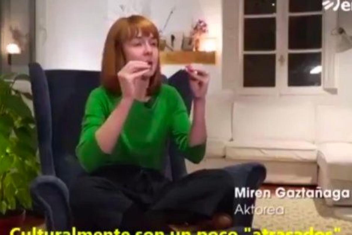 Pero aún hay más. En el espacio televisivo aparece la actriz Miren Gaztañaga afirmando que los españoles son "culturalmente un poco atrasados" y que al pensar en ellos le viene "la imagen de un cateto".
