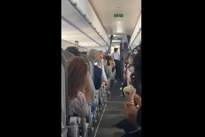 Tras el aplauso de algunos pasajeros, el conductor del avión ha proseguido con su mensaje y ha asegurado que “tenemos una gran alegría por llevar a bordo a nuestra representante en Eurovisión, Chanel, y todo su equipo”.