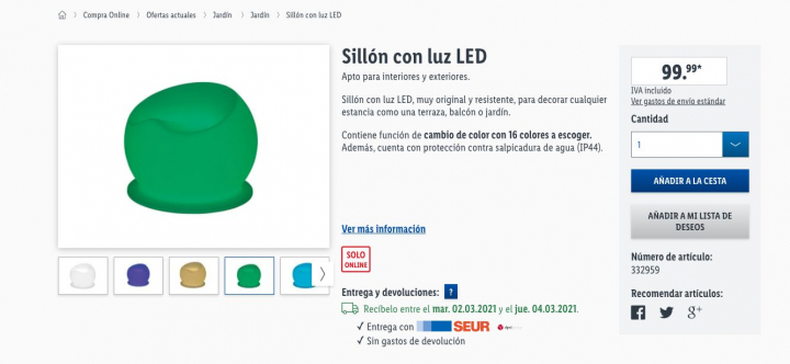 Lidl ha traído a España su famoso sillón con luz LED, un producto que suele estar entre la lista de los más vendidos de Alemania y que ahora, con la llegada de la primavera, pretende lograr el mismo éxito que allí.
