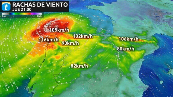 Sobre los plazos de la borrasca, la meteoróloga de eltiempo.es ha marcado que “va a durar, al menos, hasta media tarde del viernes. Los vientos se van a mantener muy fuertes o fuertes hasta bien entrada la tarde, mientras el oleaje seguirá a este nivel de aquí a la madrugada, luego se reducirá algo, aunque seguirá siendo fuerte”.