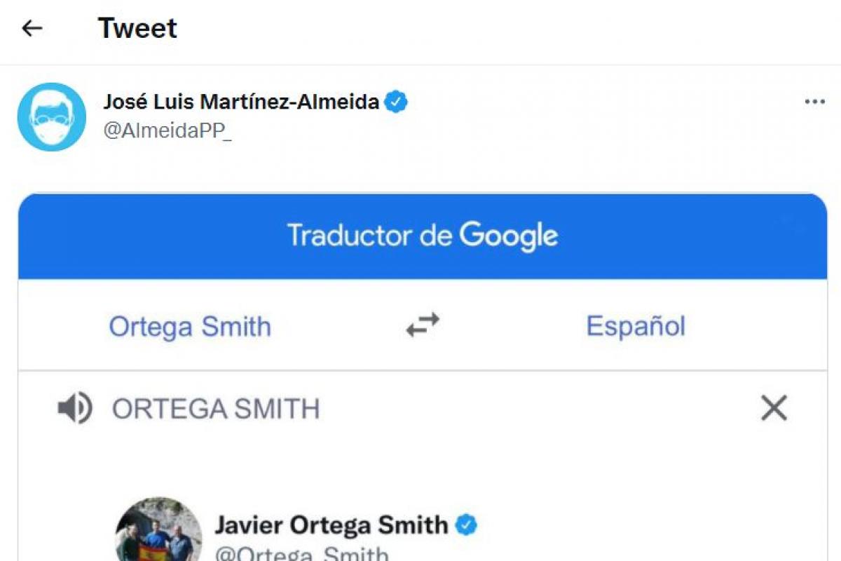 Esta vez, Almeida citó el hilo junto con una captura de lo que parecía ser el traductor de Google. Lo peculiar de esta captura es que en la parte de arriba se podía leer como el idioma del que quería traducir al español era ni más ni menos que “Ortega Smith”.