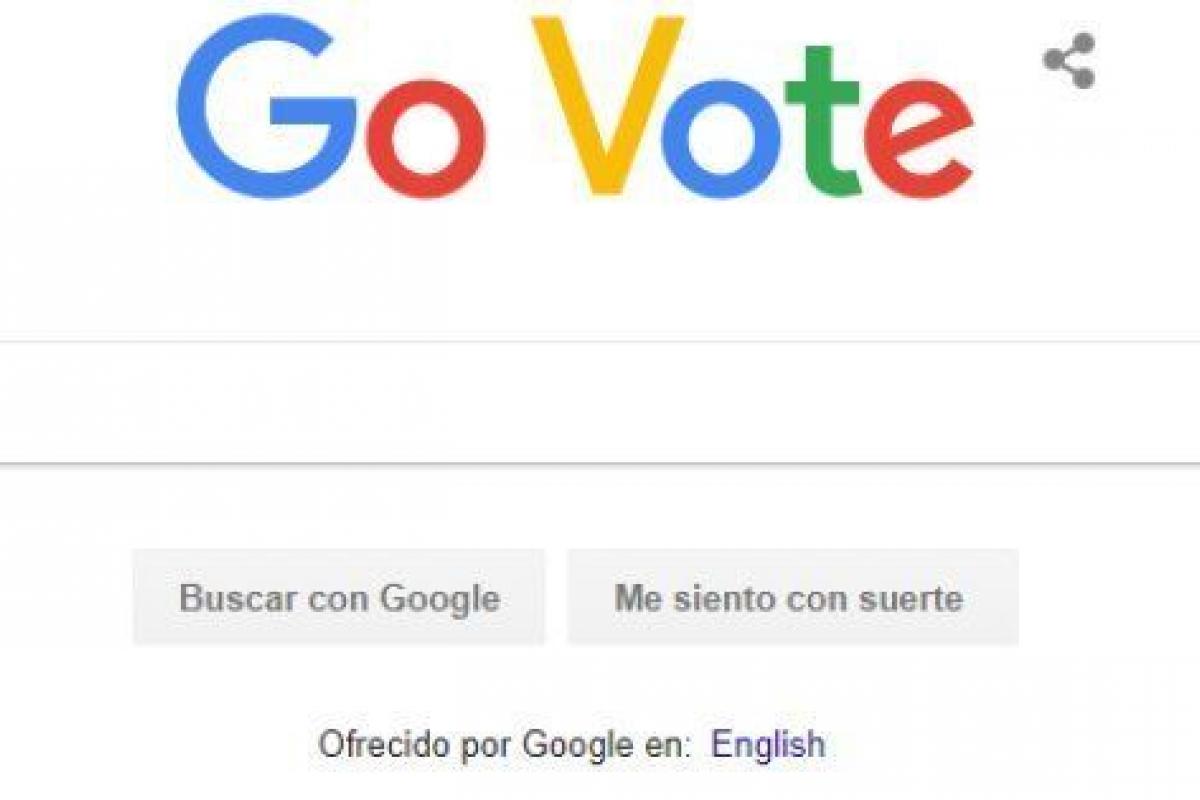 Google ha subido este martes en Estados Unidos un doodle (la imagen de su logotipo que preside la página de búsqueda) en el que se lee, en lugar de su nombre, la palabra "Go Vote", es decir, "ve a votar".