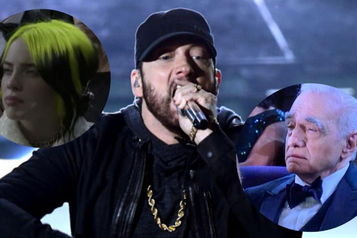 Billie Eilish, de 18 años, tenía dos años cuando Eminem ganó el Oscar. Su cara al empezar el show lo dice todo.