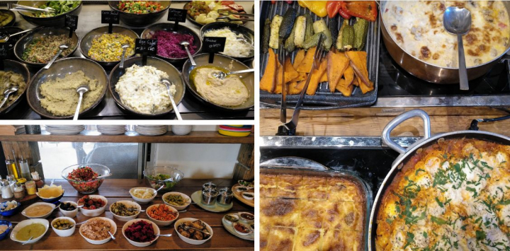 Los desayunos del Ibex incluyen el clásico shakshuka (similar a un pisto especiado con huevos), tahina (pasta de sésamo), crema de lentejas, queso cottage, queso blanco, baba ganush (crema de berenjena) y labneh (un tipo de queso de yogur), entre otros productos. “Antes la gente comía más queso, pero ahora cada vez hay más personas veganas, así que tiendo a preparar más platos para ellos”, señala Aviva.