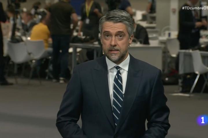 Desde el plató instalado en el recinto, Carlos Franganillo se ha puesto al frente del programa, como también hará los próximos días para seguir todo lo que ocurra en la cumbre.