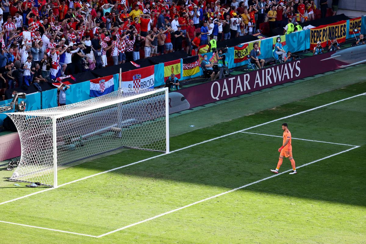 Un error histórico. El guardameta de la selección española Unai Simón ha cometido el fallo más grosero de esta Eurocopa para adelantar a Croacia en el partido de octavos del torneo.