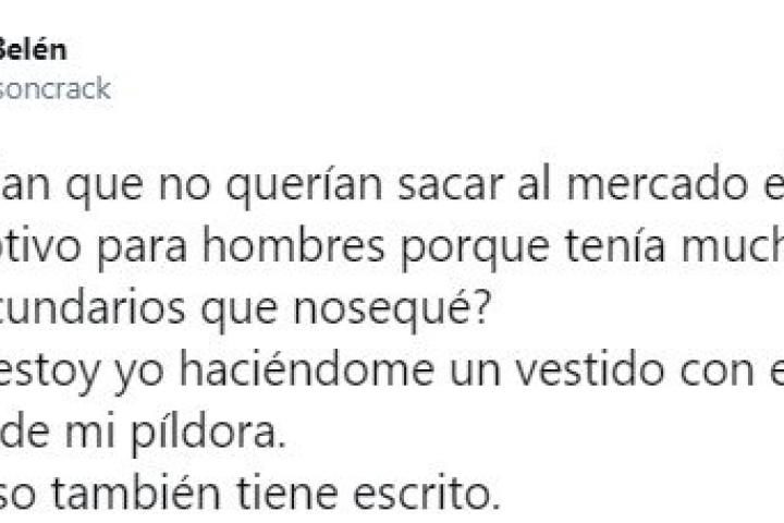 ″¿Se acuerdan que no querían sacar al mercado el anticonceptivo para hombres porque tenía muchos efectos secundarios que nosequé?”, se ha preguntado.