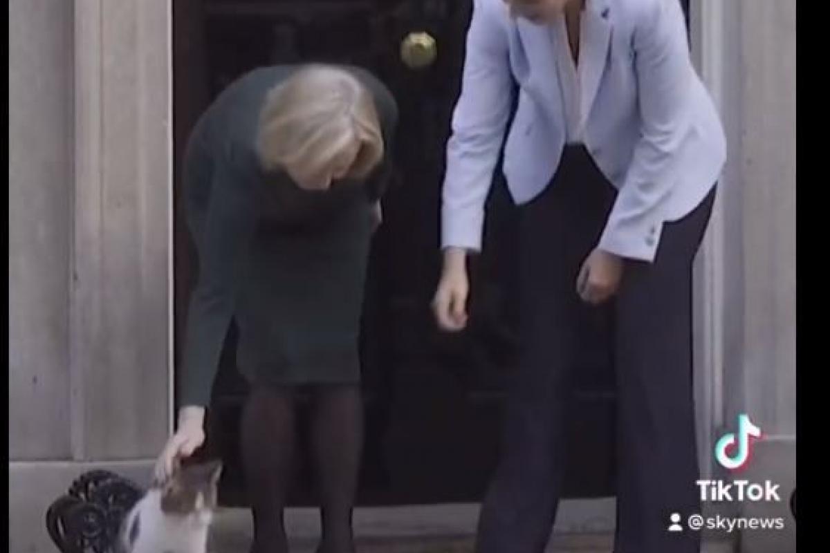 En el vídeo, que publicó Sky News en su cuenta de TikTok y que ya han visto más de un millón de personas, la mandataria está a punto de entrar al 10 de Downing Street cuando se da cuenta de que allí al lado, junto a la puerta, está Larry, el gato de la residencia oficial de los primeros ministros y que es una celebridad en las redes sociales.