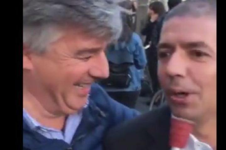 Ellos, sin embargo, no tuvieron reparos en agarrar lo que parece una muleta y, como si fuera un micrófono, pasársela mientras decían lo siguiente: "Aquí, desde televisión pirindola, pasando una jartá de frío en la Plaza Nueva con todas estas guarras que no trabajan. Míralas... todas", dice uno de ellos. "Lo que hay es que fregar más, que son todas unas golfas", añade el otro entre risas. "Hay que fregar un poquito más", agrega el primero.