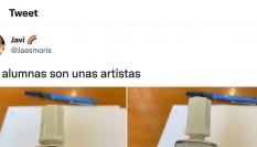 “Alumnos dibujando rectángulos con típex para que los profes tengamos que fijarnos y tardemos más en encontrar la tiza. Son genios del mal”, ha explicado el docente en Twitter.