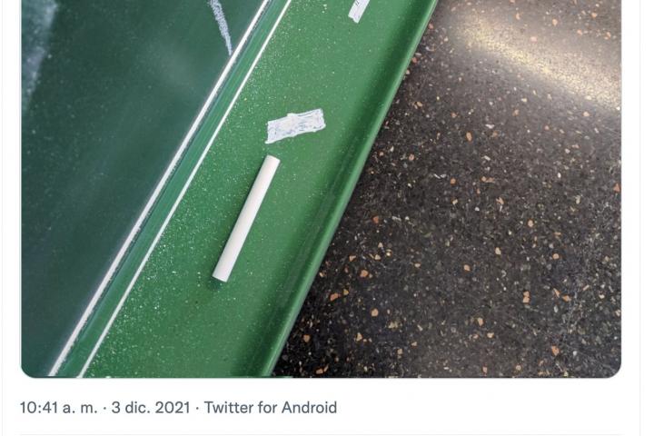 En una imagen que supera con creces los 6.000 ‘me gusta’ se puede ver un trozo de pizarra en el que hay lo que parecen multitud de tizas. Si uno fija un poco la vista ve que algo falla y que no todo son realmente tizas.