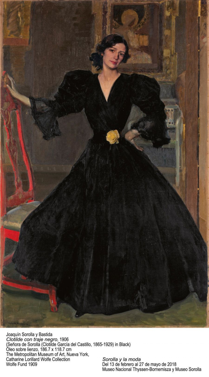 La mayoría no son la pieza exacta que vemos en los cuadros, pero sirven como referencia y testimonio de la faceta de observador de Sorolla, que captó cómo se fueron liberando las mujeres a través de las prendas que vestían. Buena muestra de ello es el retrato Clotilde con traje negro pintado en 1906, en el que aparece la mujer del pintor que se expone junto a un traje de tafetán y algodón del Museo de Artes decorativas de París que data de 1900 y en el que se puede apreciar el mismo estilo que en la pintura. "Pintaba la moda que estaba en la calle", explica Martínez de la Pera.