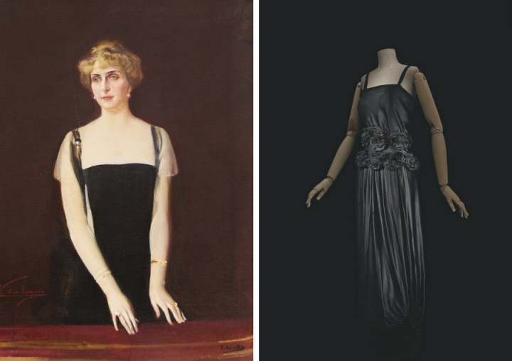 La moda comenzaba a globalizarse, y las mujeres de distintos estratos sociales cambiaban su forma de vestir. Esta globalización llegaba hasta la realeza, y así se encargó de retratarlo Sorolla en piezas como Reina Victoria Eugenia en el palco del Teatro Real. En este cuadro viste un diseño negro con amplio escote y líneas sencillas que bien podría ser uno de los vestidos de Vionnet colocados en la exposición.