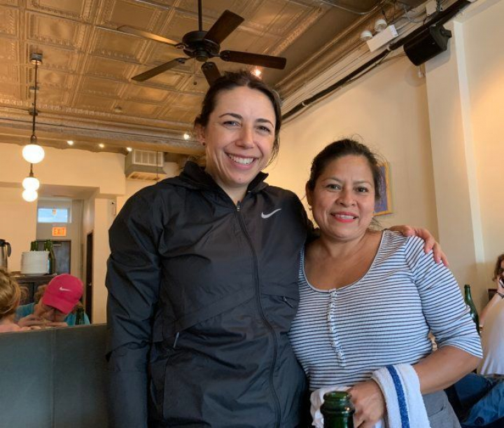 Cuando Pilar conoció a su esposo Rufino él ya corría, y fue entonces que a ella le dieron ganas de hacer un maratón. "¡No! O sea, es fácil decirlo pero no hacerlo", le dijo él. Ella insistió. "Él se entrenaba y yo siempre atrás de él, yo lo seguía", dijo Pilar. La batalla del entrenamiento no fue fácil. Meserear horas te deja agotado, y después de eso, Pilar debía salir a correr 5 o 6 millas. "Cerca de la fecha del maratón lo tomé más en serio. Iba a dejar a mi hija a la escuela y de ahí al parque de mi casa. También conseguí permiso con el dueño de Lula Café para no trabajar sábados ni domingos", cuenta. En todo esto Rufino fue esencial. "Él me forzaba a hacer mis carreras. Me motivaba".