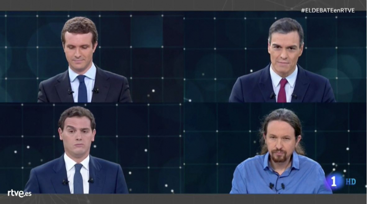 ″¿Lo oyen? Es el silencio”, decía Albert Rivera en su minuto de oro. ¿Lo ven? Son sus corbatas, sus gestos o sus manos los que nos cuentan mucho más de lo que parece. No ha sido precisamente un camino de rosas el que ha precedido a este debate a cuatro en RTVE. Parecía que no iba a suceder, pero llegó con la resaca de Semana Santa y con él los cuatro candidatos juntos frente a las cámaras de la televisión pública. Un debate decisivo en el que Pedro Sánchez, Pablo Casado, Pablo Iglesias y Albert Rivera intentaron conquistar al más de 40% de ciudadanos indecisos que todavía no tienen claro su voto.
