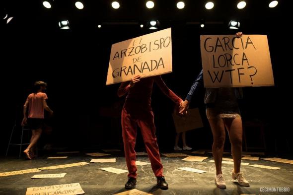 La frase que encabeza este post es una de las frases más repetidas en los teatros madrileños en los últimos años. Procede de Comedia sin título de García Lorca, el inagotable. A ella recurren todos los profesionales del teatro que reclaman otra forma de hacer las cosas, otra forma de ver, una manera menos convencional de contar en un teatro. Una frase que se puede escuchar en la obra Los bancos regalan sandwicheras y chorizos de la jovencísima compañía José y sus hermanas que se ha podido ver en la sala pequeña del Teatro Español. Obra que ha coincidido en la cartelera con Un cine arde y diez personas arden que ha puesto en pie la compañía Grumelot en el Centro Cultural Conde Duque de Madrid, donde son compañía residente. Obras muy similares en la puesta en escena, el triunfante teatro inmersivo que ofrece esas experiencias que demanda el mercado del ocio. Sin embargo, la primera se queda en contar “lo que pasa” mientras que la segunda cuenta “lo que nos pasa”. ¿Que qué significa esto?