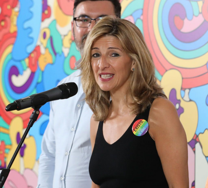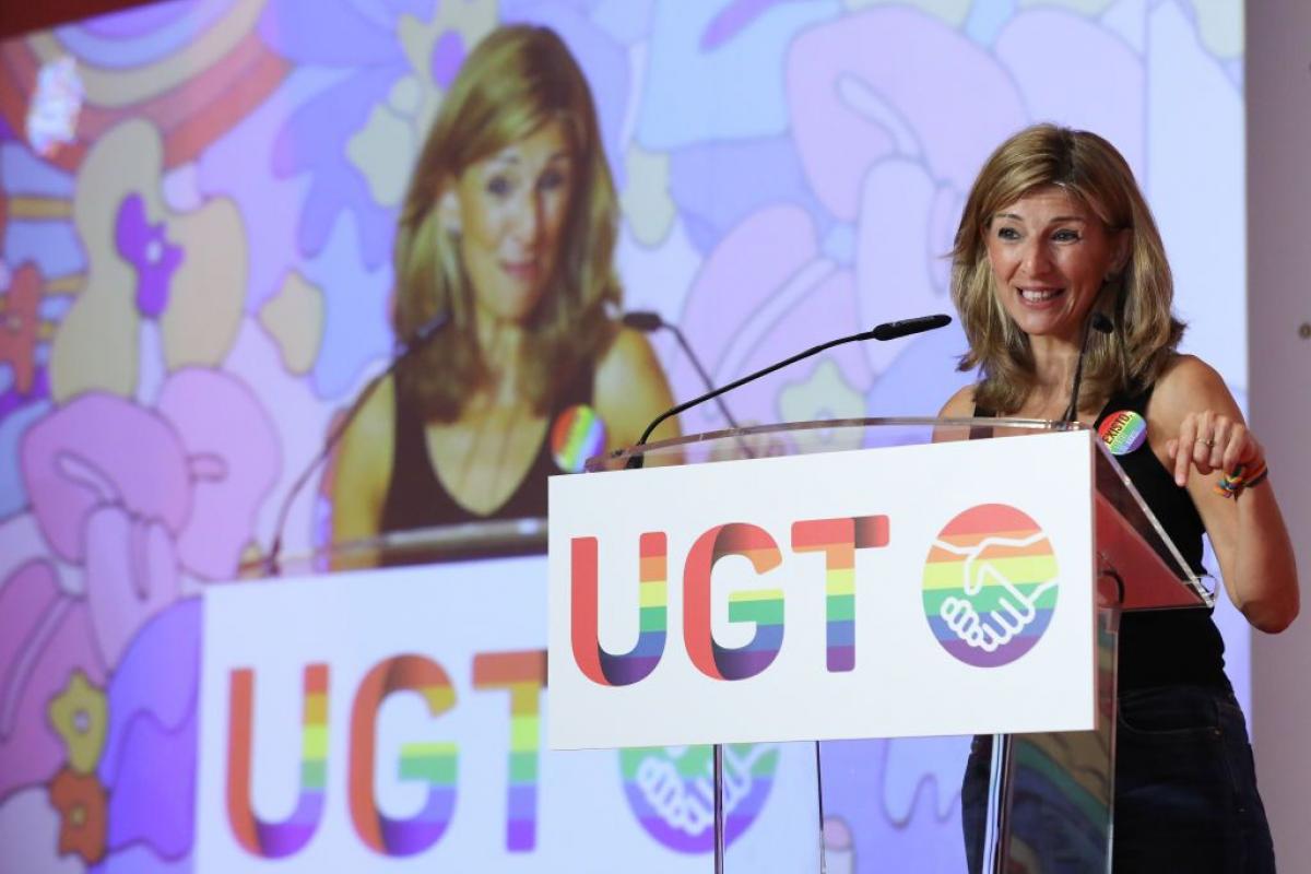Yolanda Díaz, vicepresidenta segunda del Gobierno y ministra de Trabajo, ha levantado ampollas entre muchos usuarios de Twitter por el lema que se podía leer en una chapa que llevaba colgada durante su participación en las Jornadas Confederales UGT sobre ‘Las personas LGTBI en la negociación colectiva y el diálogo social’.