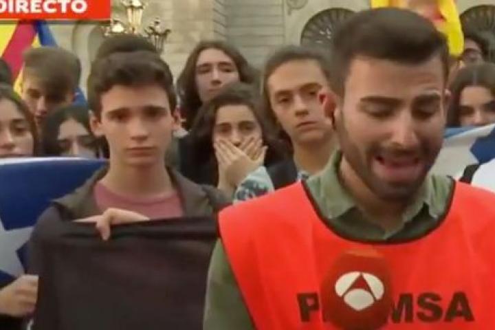 Nunca un gesto tan simple dio tanto que hablar en redes sociales. En pleno directo de Antena 3 Noticias, mientras un reportero hablaba de la protesta que los estudiantes han hecho esta mañana en Barcelona, un joven ha dado mucho que hablar.