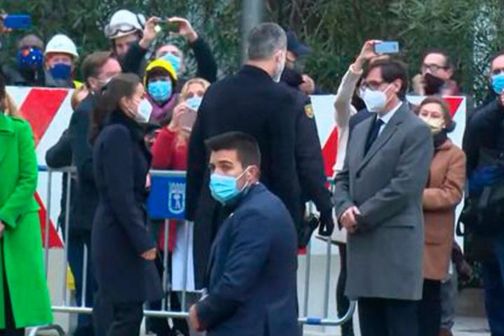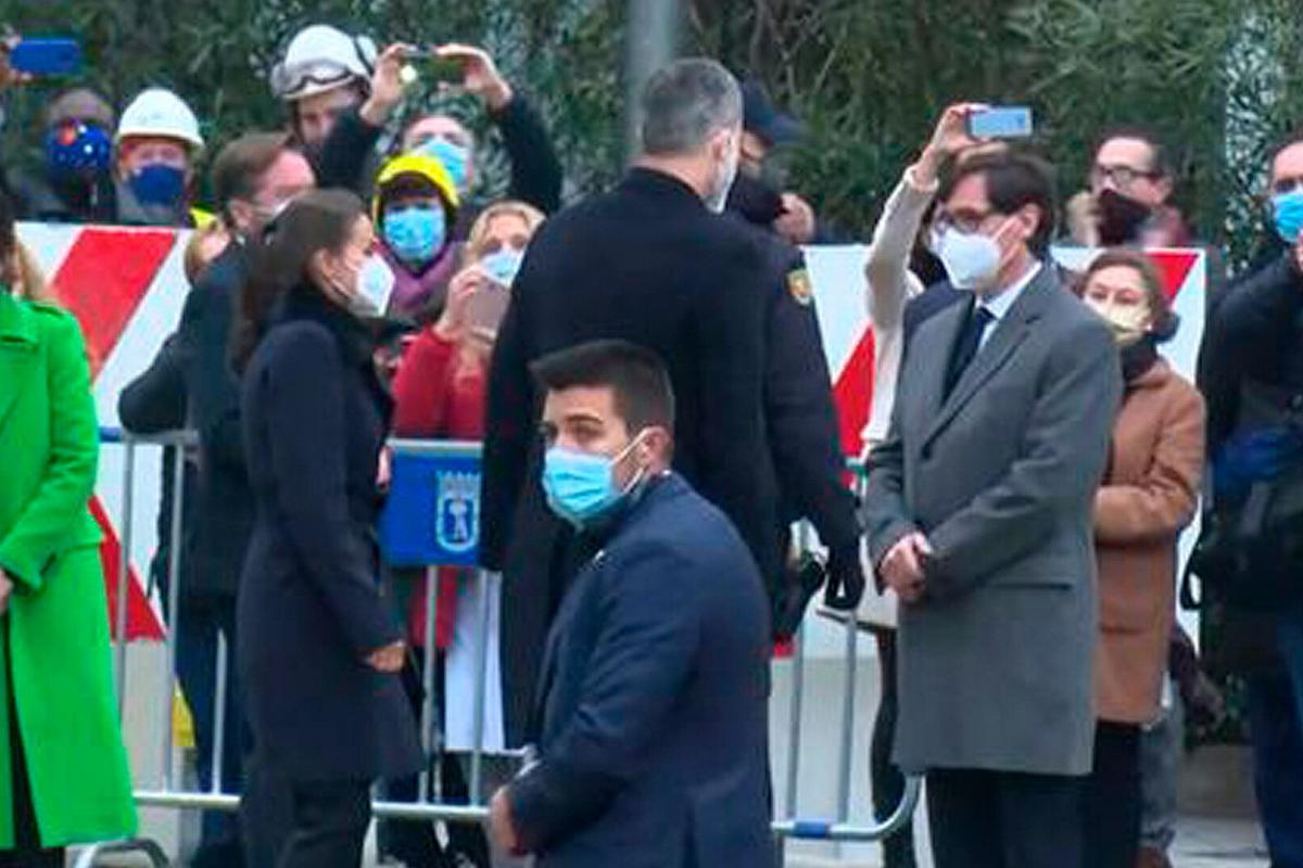 Antes y durante la llegada de Felipe VI y de Letizia, un grupo de personas que se encontraba en la zona han abucheado al ministro. “Illa dimisión”, ”¡Illa tú mejor fuera de la foto! ¡Fuera! ¡Fuera!” y “viva el rey” son algunos de los cánticos que ha tenido que soportar el dirigente de Sanidad.