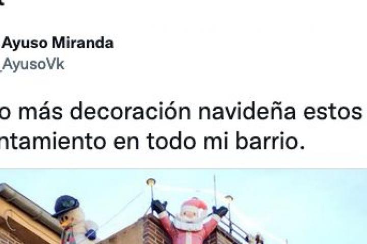 “Han puesto más decoración navideña estos vecinos que el Ayuntamiento en todo mi barrio”, ha escrito el usuario Daniel Ayuso, que ha sido el que ha compartido la imagen en su perfil de Twitter.