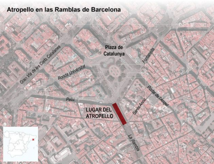 - A las 16.50 horas, una furgoneta accedió por el carril central en La Rambla de Barcelona y atropelló a decenas de personas. Recorrió 800 metros haciendo eses para alcanzar al máximo número de personas.